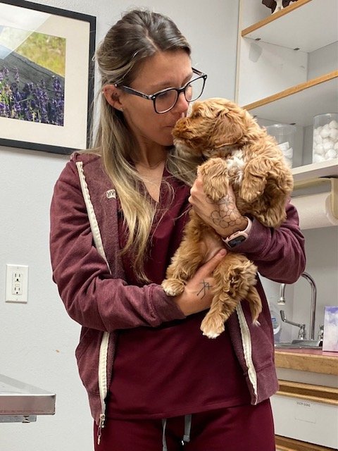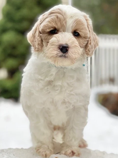 Mila whelped nine healthy puppies on 11.29.22 - 5 girls and 4 boys. She truly is a wonder dog who enjoys everything about becoming and being a mother. Rex and she again produced a beautiful litter of partis and apricot/reds with white markings. The puppies should mature to around 20-27 pounds and 16”-17” to the withers(shoulders). They’ll be the perfect size for cuddling on your lap, jumping independently into the car, going on hikes, racing along the beach, swimming, you name it! Congratulations to all who get a therapy temperament Mila & Rex puppy!